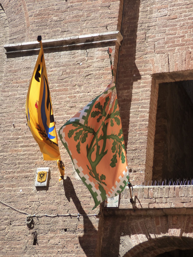 The area of the contrada corresponds roughly to the south-west part of the center and includes, among others, Via Casato di Sotto (right from Piazza del Campo to the Costa Larga), Costa Larga, part of via di Monna Agnese, piazza del Duomo (excluding the Archbishop’s Palace and the Cathedral), via del Capitano, part of the Chiasso del Bargello, piazza Jacopo della Quercia and piazza di Postierla (where the baptismal fountain is located), just to name a few.