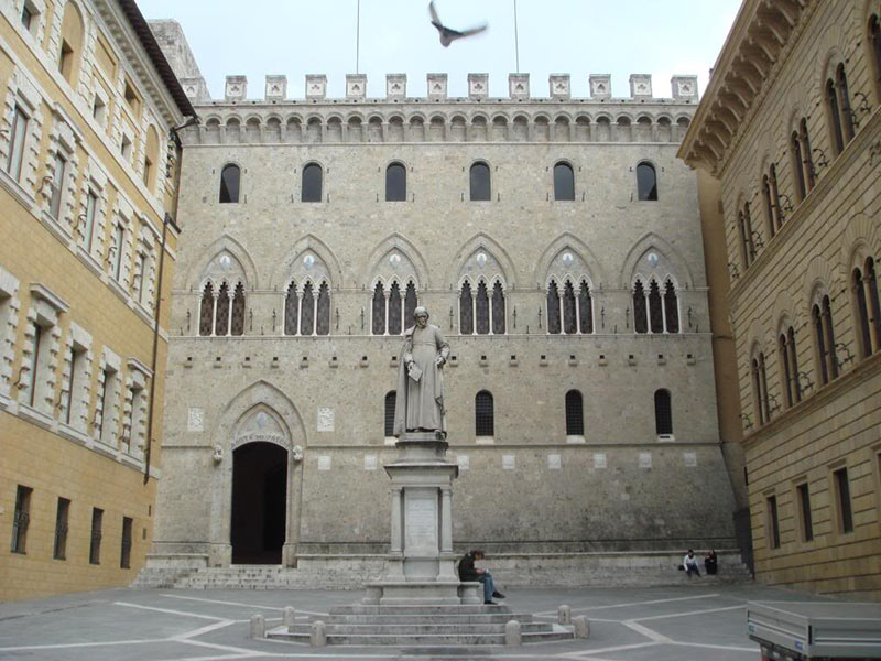 From Via Banchi di Sopra you can reach Piazza Salimbeni, where is Palazzo Salimbeni, home of the Monte dei Paschi di Siena, the oldest bank in the world.