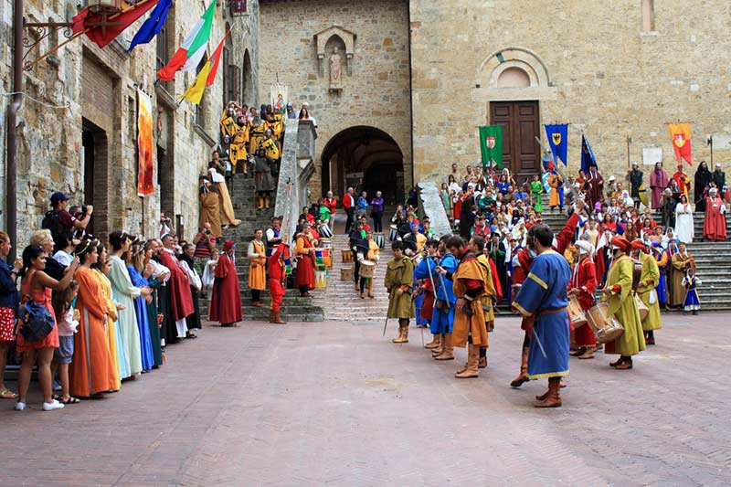 Today the celebration is organized by the association “I Cavalieri di Santa Fina” and consists of a historical parade in medieval costume and in a series of challenges between the contrada of the town, culminating in the Giostra dei Bastioni.