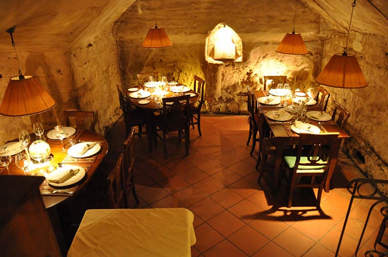 A setting carved into the tuff stone and modified to accommodate a fine restaurant: this is what you will see at the Antica Osteria Da Divo, at via Franciosa 25.